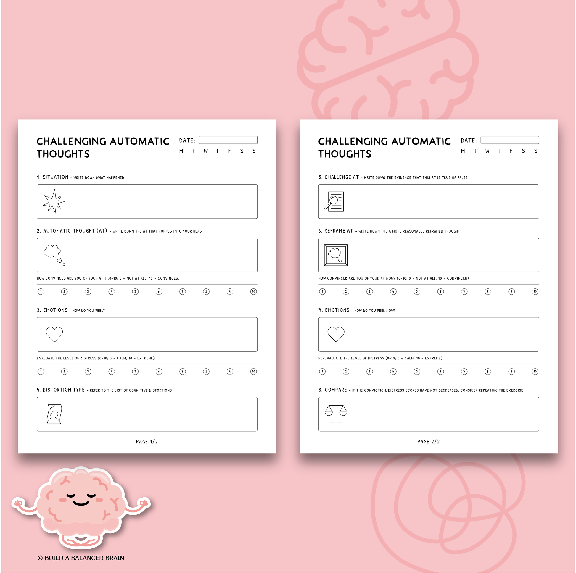 These Challenging Automatic Negative Thoughts worksheets help adolescents and adults identify and reframe unhelpful thoughts. With guided prompts and practical exercises, it encourages self-awareness, critical thinking, and positive mindset shifts. Perfect for classrooms, therapy, or home, this tool fosters emotional resilience and healthier thought patterns in a supportive way.