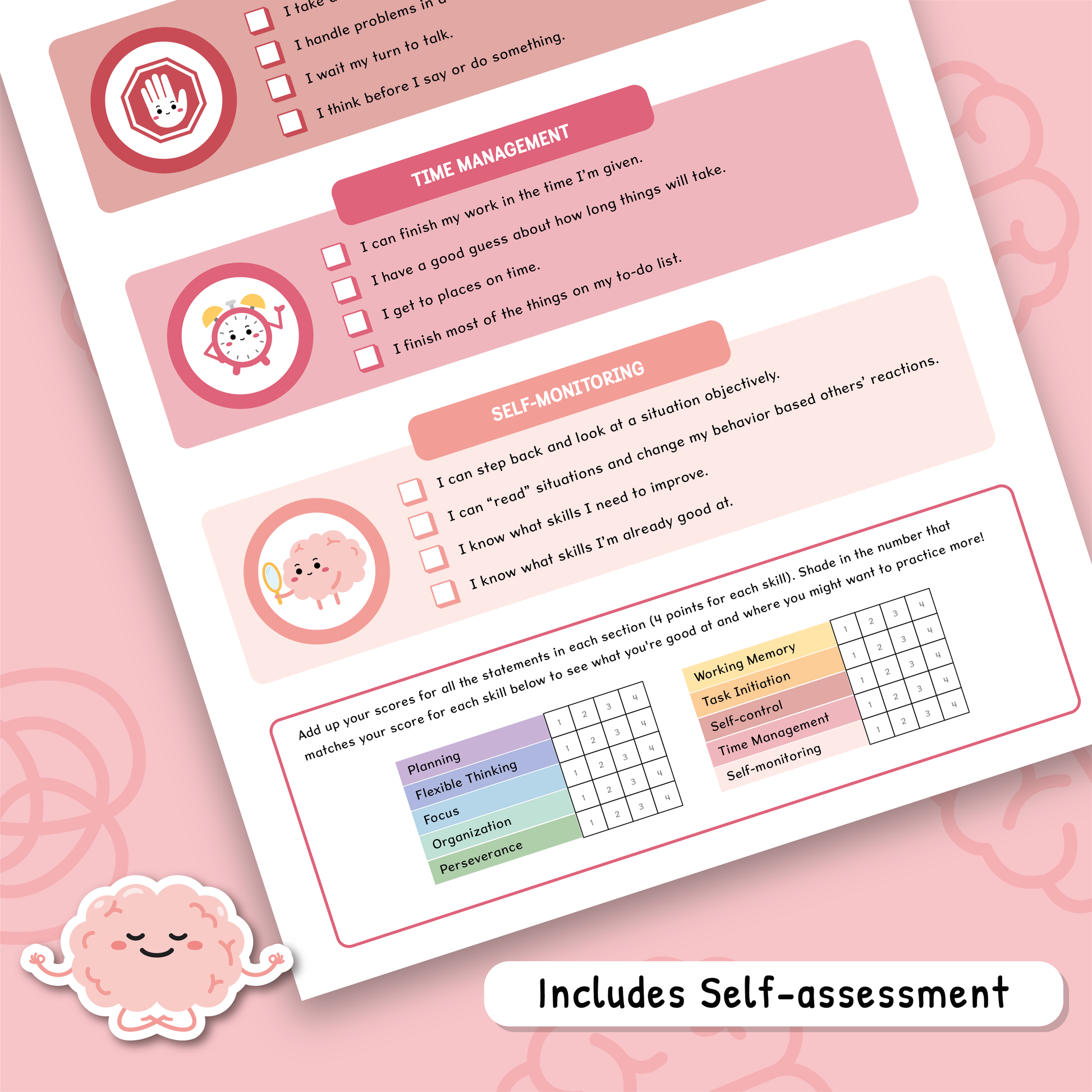 This 6-page resource covers 10 key executive functions with simple explanations, helpful tips, and a visual self-assessment checklist. Great for boosting awareness and building skills at home or in the classroom.