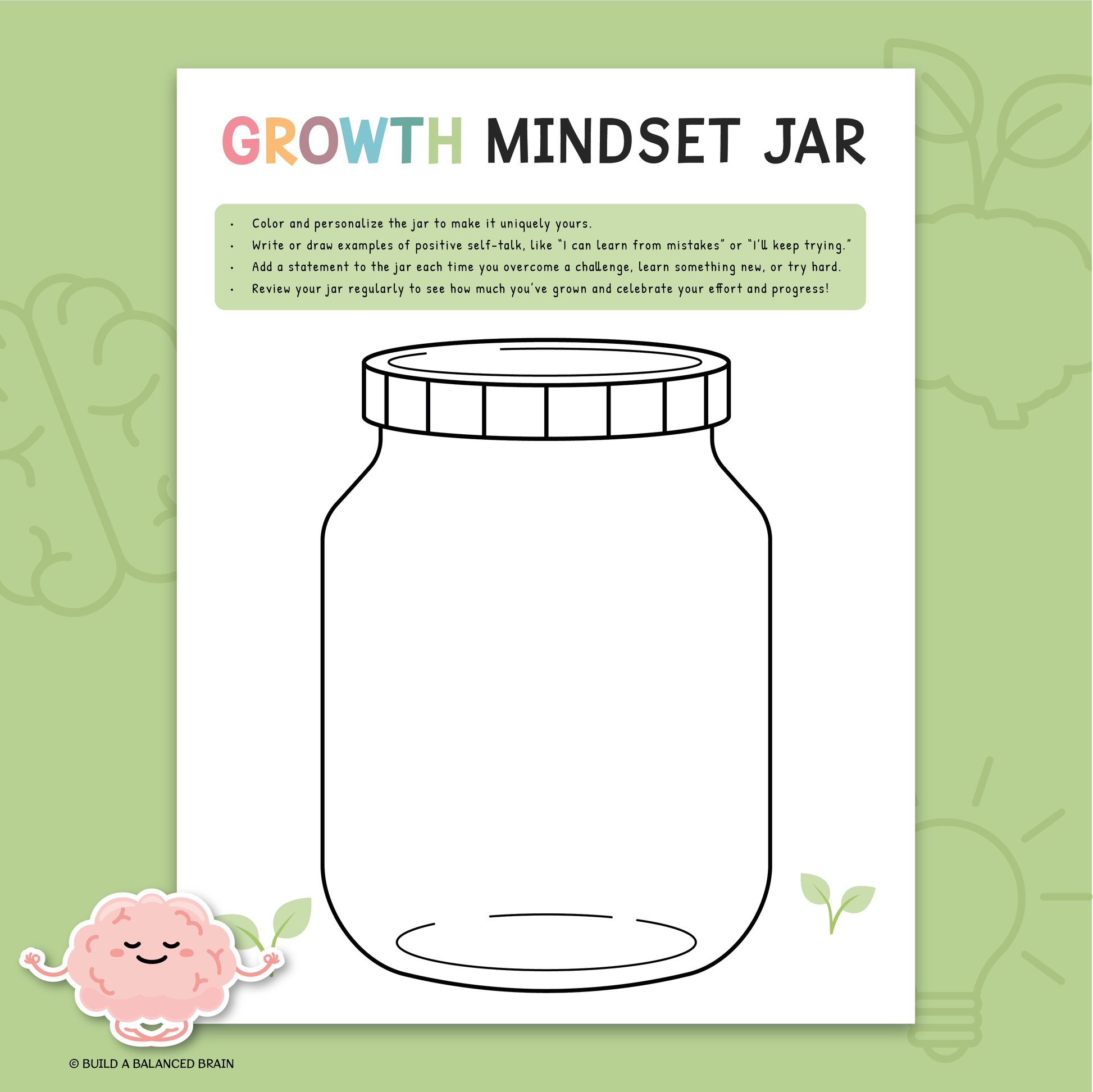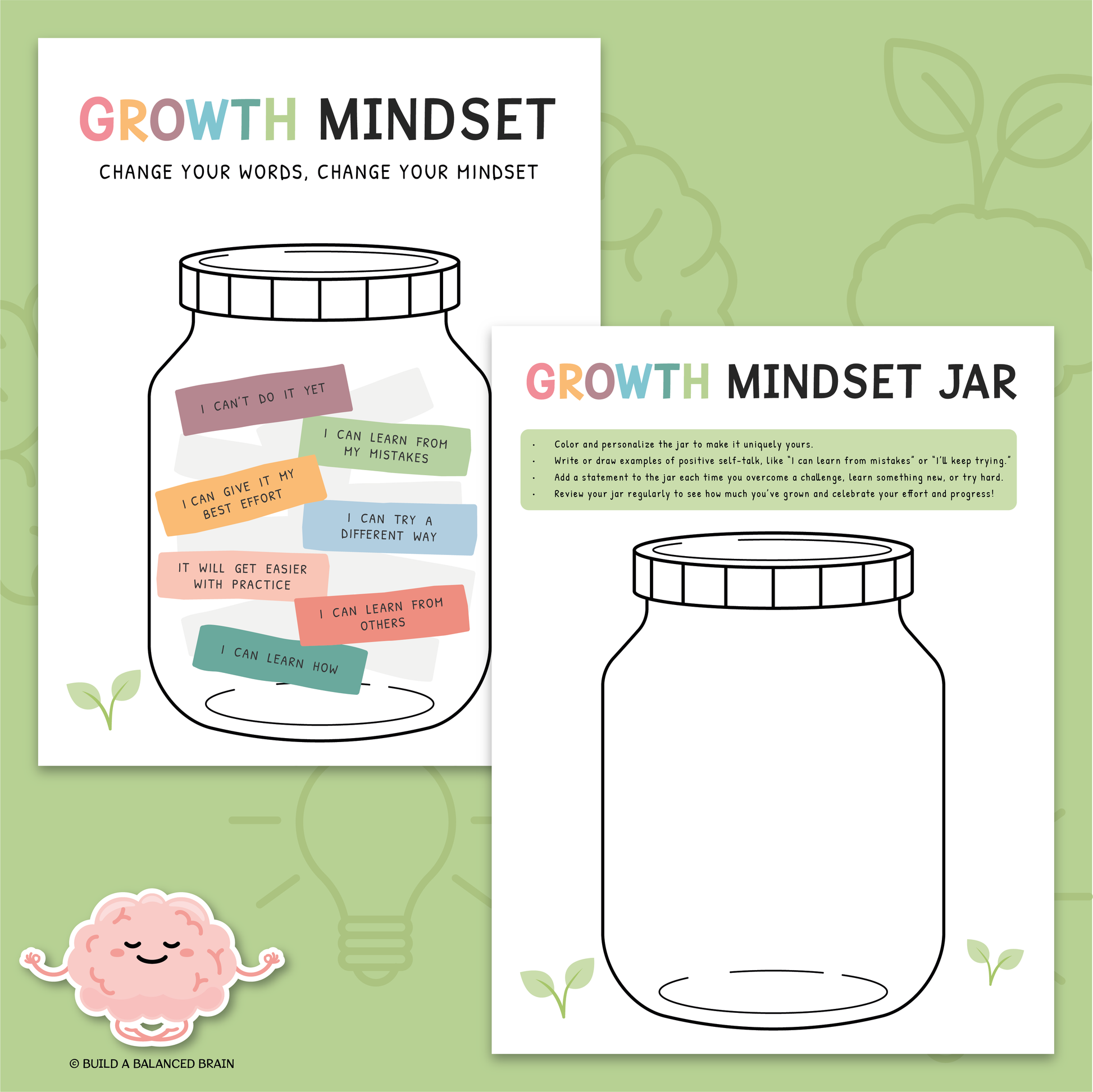 The Growth Mindset Jar empowers people of all ages to embrace challenges and build a stronger, more resilient mindset! Kids and teens can personalize the jar, write examples of positive self-talk, and add a statements to the jar each time they overcome a challenge, learn something new, or try hard.
