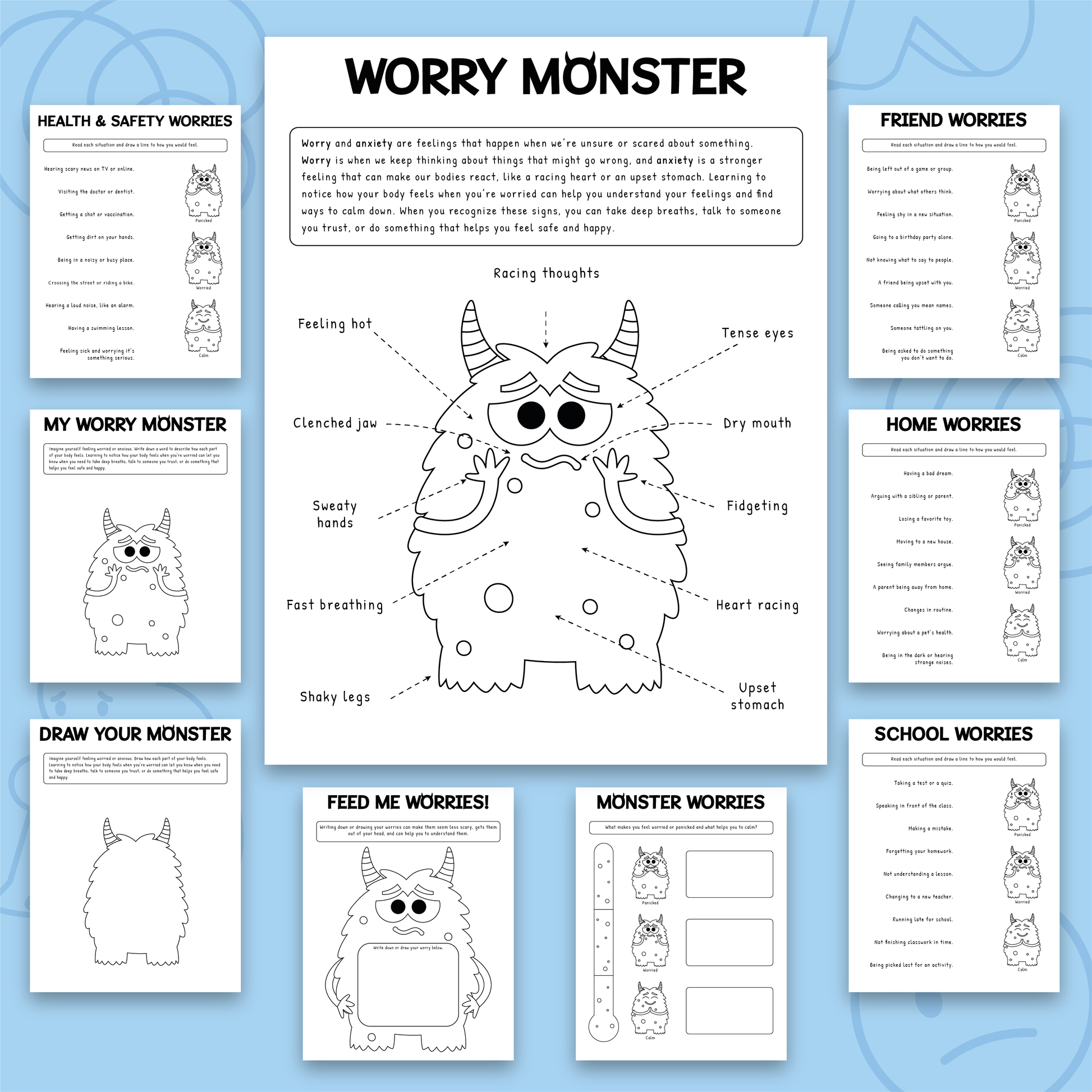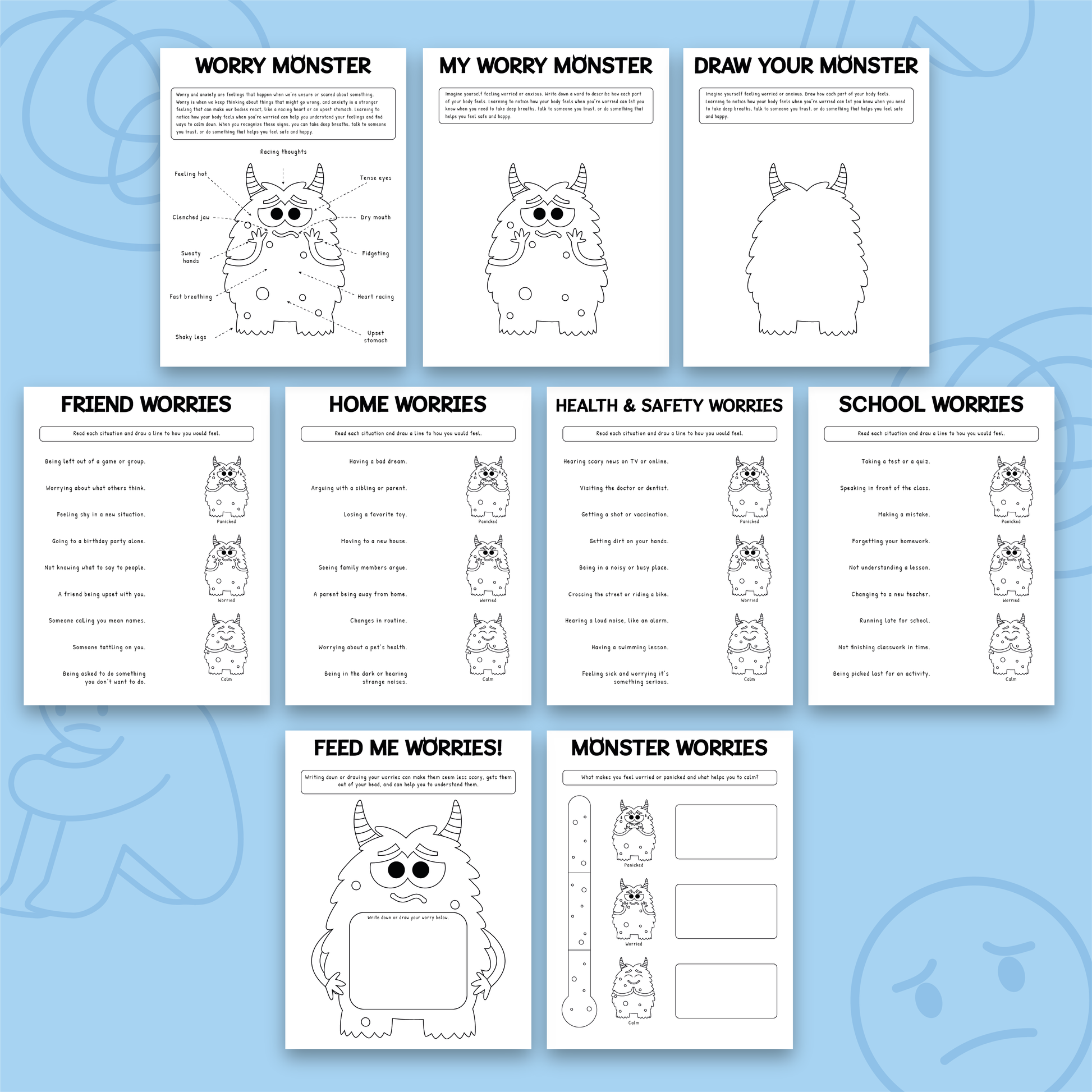 Help children manage their worries with this fun and engaging Worry Monster set Designed to encourage emotional expression, this worksheet allows children to write or draw their worries and "feed" them to the friendly Worry Monster. Perfect for home, school, or therapy sessions, it’s a great tool to promote self-awareness and emotional well-being in a playful way.