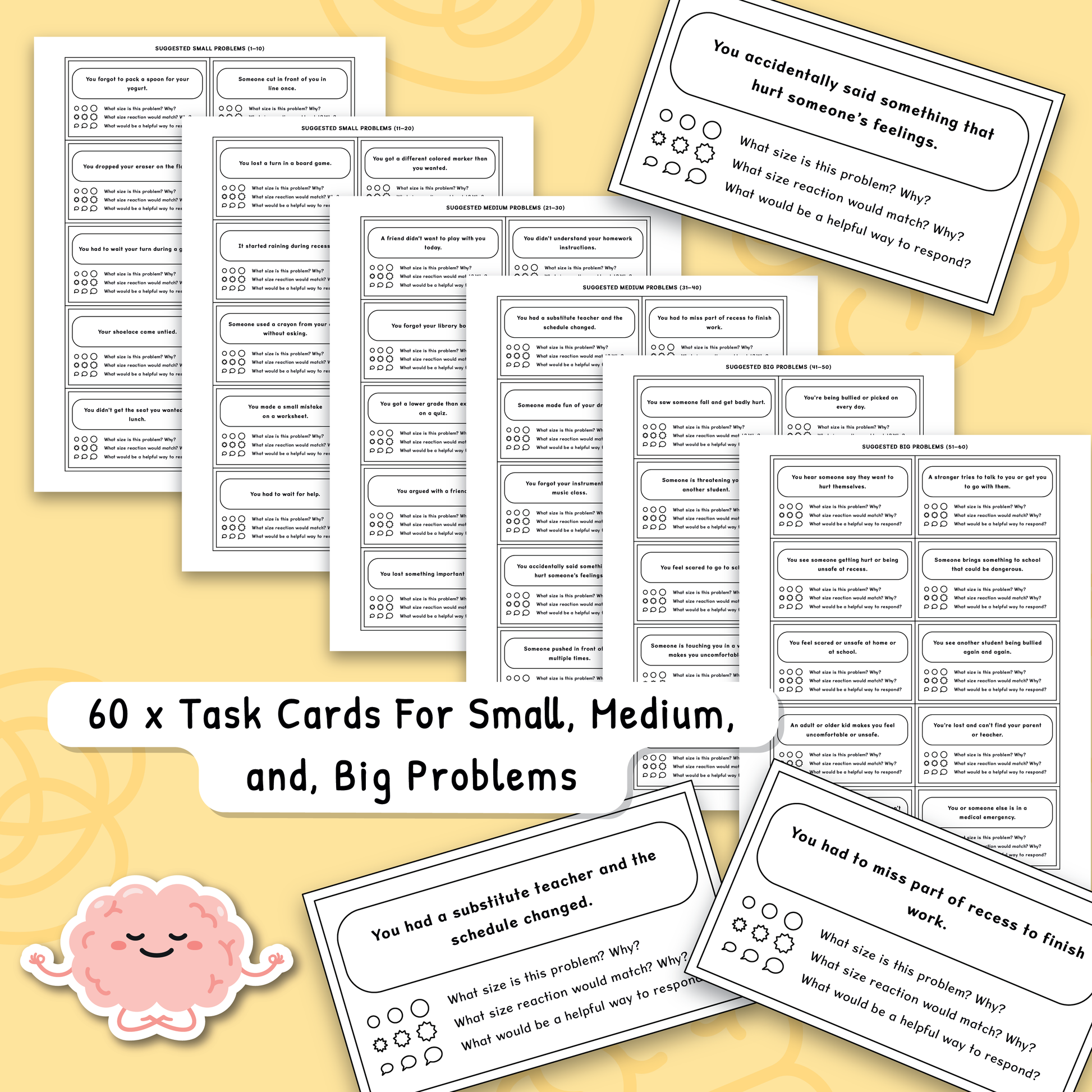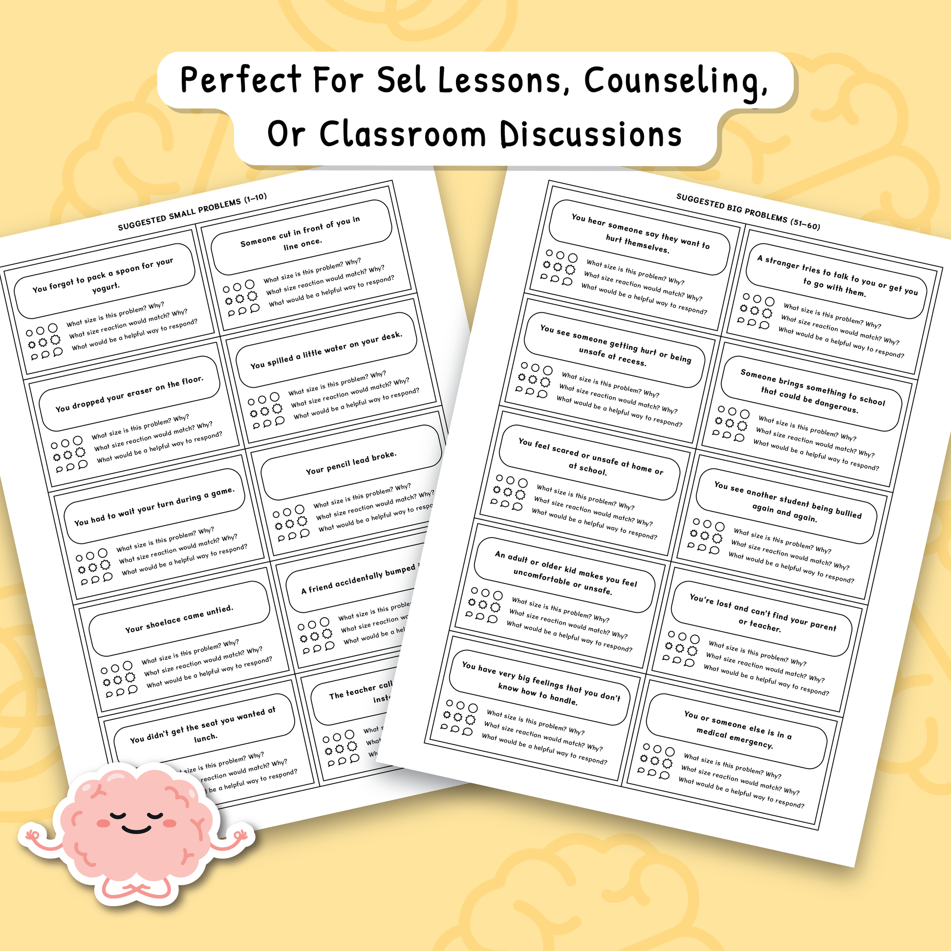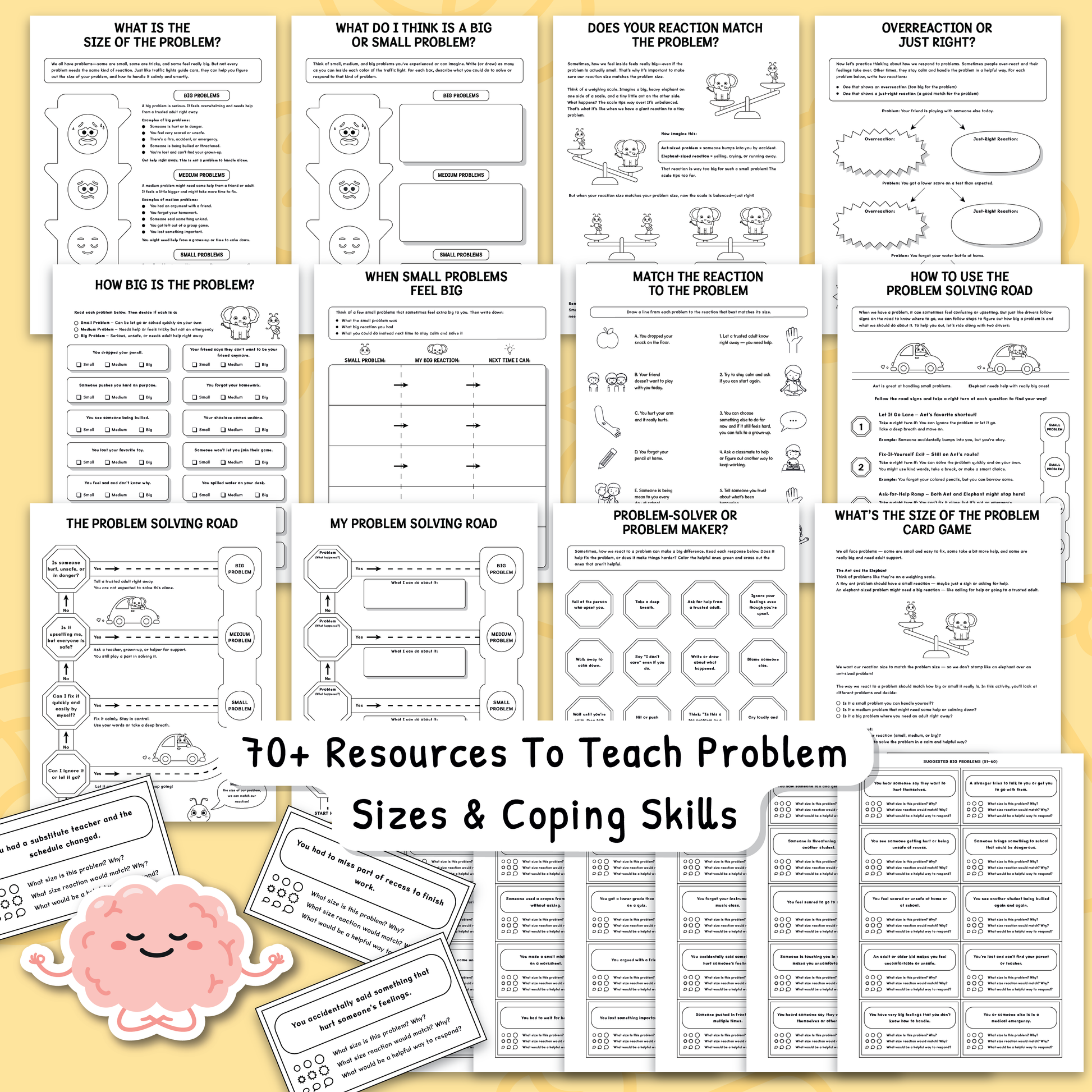 This engaging 18-page printable SEL bundle helps children aged 6–11 learn to recognize the size of a problem, match it with a right-sized reaction, and decide what to do next. Using a child-friendly traffic light system alongside playful ant and elephant characters, this resource teaches students how to pause, assess, and respond to everyday challenges.